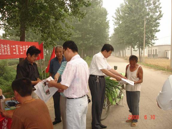 聊城是农业大市,去年我市小麦播种面积达到近六百万亩。为以实际行动支援“三夏”生产,国际和平医院成立了以内、外、妇、儿、神经等科骨干专家为主的医疗队,深入麦田现场为农民送医送药。在这次支援“三夏”生产活动中,该院医疗专家不顾酷热逼人,不辞辛苦来到阳谷七级镇、郭店屯乡以及东昌府区于集镇、北城办事处、蒋官屯等乡镇的十几个村庄。为农民免费送去了价值数千元的各类防暑降温药品,分发了一万余份健康宣传材料,深受群众好评。